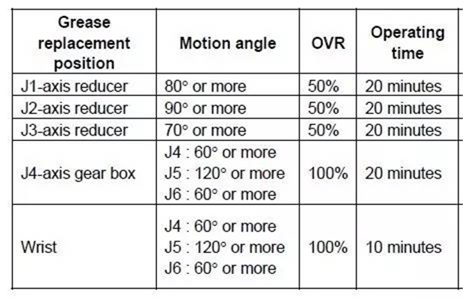 1. 當正常使用的機器人運行時間達到1萬小時或使用3年時需要更換本體減速機內(nèi)部潤滑油,根據(jù)機器人實際使用環(huán)境適當縮短保養(yǎng)間隔周期。