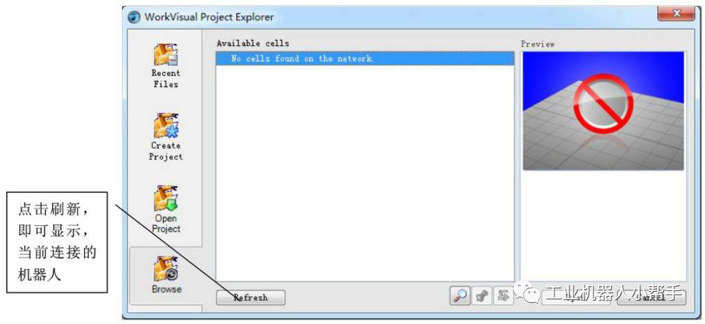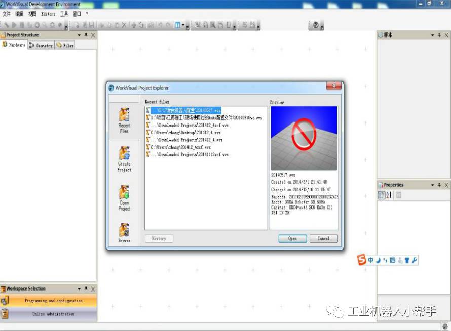 將電腦改成與機(jī)器人同一IP段,網(wǎng)線機(jī)器人與電腦連接,打開Workvisual軟件(以下為WV)。