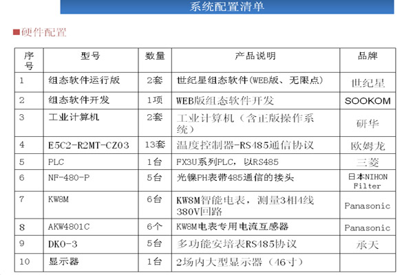 系統(tǒng)說(shuō)明 l1.RS485總線來(lái)采集設(shè)備的各種參數(shù)。通過(guò)PLC與設(shè)備上的溫控表、PH值表、傳感器等以通信、 l2.使用工控組態(tài)軟件來(lái)存儲(chǔ)記錄PLC中采集的各種設(shè)備參數(shù)。 l3.使用KW8M 采集電流、電壓數(shù)據(jù)通過(guò)RS485通信。 l4.世紀(jì)星監(jiān)控系統(tǒng)控制策略的創(chuàng)建是在策略編輯器中實(shí)現(xiàn)的,策略編輯器是一個(gè)基于圖標(biāo),即功能模塊的設(shè)計(jì)環(huán)境.結(jié)合策略工具箱中的功能模塊及其相應(yīng)的參數(shù)配置對(duì)話框開(kāi)發(fā)策略與配置工作.通過(guò)RS485總線通信采集數(shù)據(jù)連接功能塊。功能模塊也稱為軟儀表,其功能與人們熟悉的模擬儀表相同,能完成現(xiàn)場(chǎng)數(shù)據(jù)的采集、處理、顯示、報(bào)警和控制等(如溫度、電流、電壓、PH值、I/O狀態(tài)).構(gòu)建控制策略時(shí),用連線將策略所需的功能模塊連接起來(lái). l5.采集的記錄報(bào)表數(shù)據(jù)發(fā)送到局域網(wǎng)外遠(yuǎn)端,在遠(yuǎn)端也能進(jìn)行數(shù)據(jù)分析。