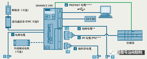 SINAMICS V90 PROFINET 版本的系統(tǒng)接線圖: